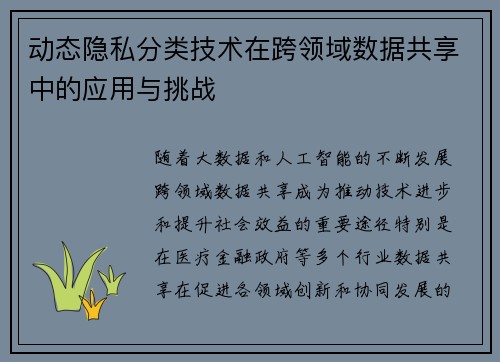 2、动态隐私分类技术在跨领域数据共享中的应用